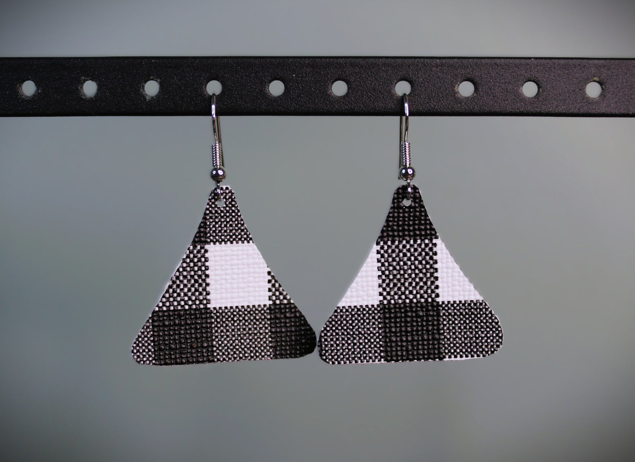 Black & white plaid faux leather earrings. Lightweight, easy to wear, and perfect for adding to any outfit.