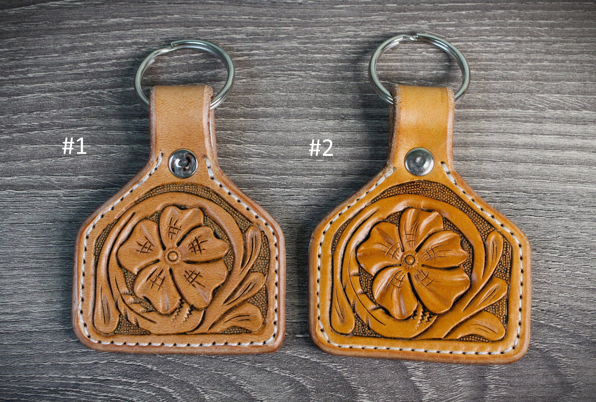 Hand‑carved flower leather keychain crafted from quality hide and detailed entirely by hand. Each piece features a unique floral design carved into the leather, giving it a warm, rustic, one‑of‑a‑kind look. Durable, timeless, and perfect for adding a touch of western charm to your keys, bags, or gifts.